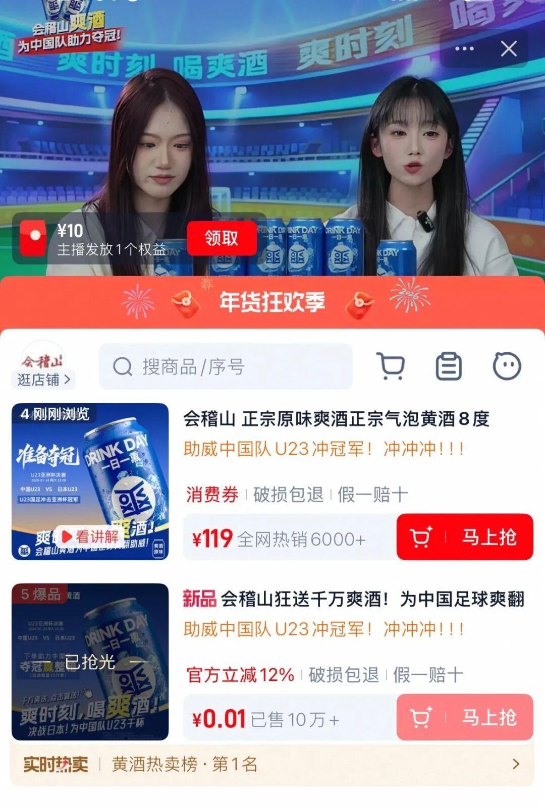在刚刚结束的U23亚洲杯上,百年黄酒品牌会稽山以“爱奇艺体育·U23亚洲杯转播合作助力官”身份亮相,其携旗下气泡黄酒“爽酒”推出“豪送十万单”互动活动,借助赛事流量与年轻球迷深度互动,完成了一次传统品牌年轻化转型的重要实践。